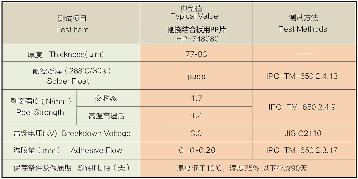 产品用途 用于挠性印制线路板和刚性印制电路板之间的连接 产品厚度 40、50、60、80、100um等 产品特性 较低的流动度 PP片裁切不掉粉 良好的粘接强度 良好的电气性能和可靠性 优异的电绝缘性能和高温稳定性 满足RoHS、REACH指令,无卤环保